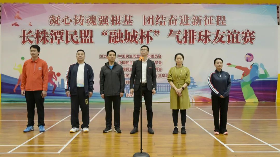 开幕式上,湖南科技大学统战部副部长罗登辉,民盟湘潭市委会专职副主委蒋瑛分别发表热情洋溢的致辞和讲话。随后,民盟长沙市委会专职副主委李兰宏、民盟株洲市委会专职副主委刘娅娟、民盟湘潭市委会专职副主委蒋瑛共同宣布比赛开幕。开幕式由湖南科技大学体育学院院长敬龙军主持。